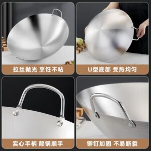 不锈钢加厚款无涂层双耳大炒锅燃气灶适用导热均匀家用商用一体式