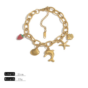 クロスボーダーステンレススチールゴールデンオーシャンストロベリーブレスレットイルカシェルさまざまなペンダントファッションミックスアンドマッチブレスレットジュエリー
