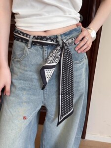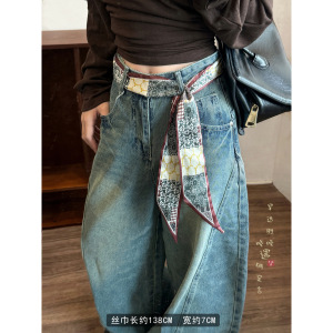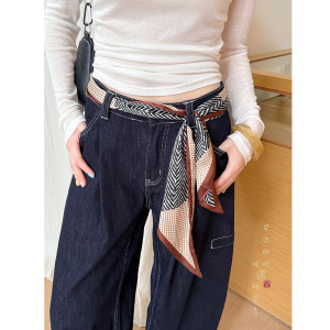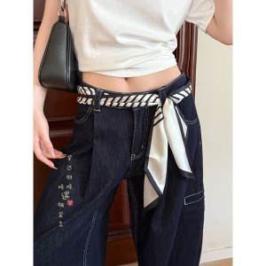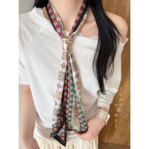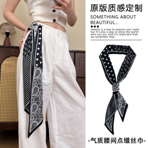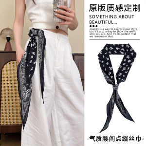 法式蕾丝珍珠腰带女高级感飘带多功能细长条小丝巾气质绑发带配饰