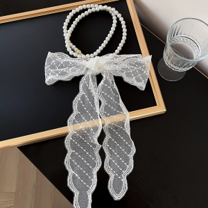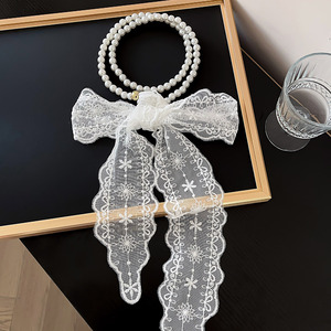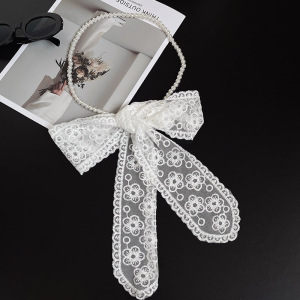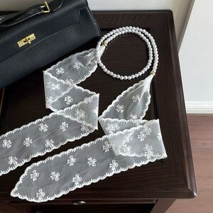 珍珠拼接蕾丝蝴蝶结丝巾-212cm