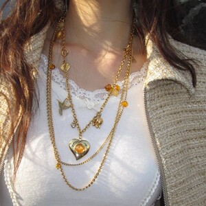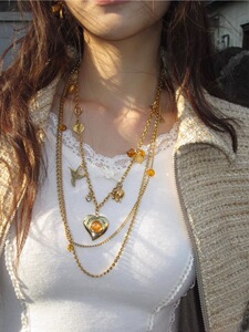 「ナイチンゲールハート」ジェムストーンラブフラワー飛ぶ鳩ゴールドとシルバーの2色のロング多層ネックレススタック鎖骨チェーンレディーストレンド