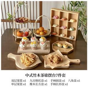 竹と木のティーブレイクテーブル3点セット 無料:フードマット50枚♜♜