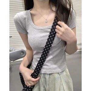 Pure Desire スクエアネック半袖 Tシャツ女性のための夏 2025 新しいスレッドショルダー甘いホットガールシックなショートティートップ
