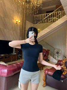 スキムズ カーダシアン コットン 半袖 Tシャツ ストレッチ スリムフィット 春夏 ネイビーブルー ラウンドネック 右肩