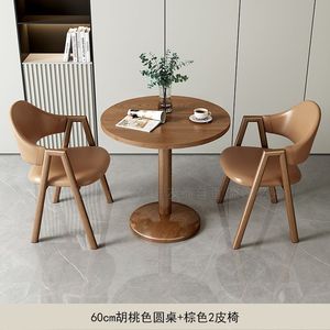 ブラウン レザーチェア2脚+ウッドカラー丸テーブル60脚
