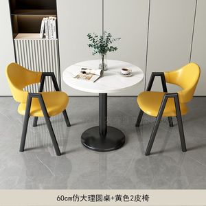 イエロー レザーチェア 2 脚 + 60 ウッドカラーラウンドテーブル