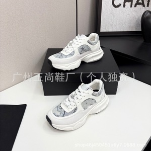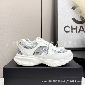 高定C家小香风蛇皮老爹鞋女25新款真皮厚底增高休闲运动鞋跑步鞋