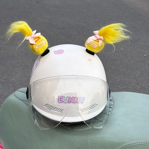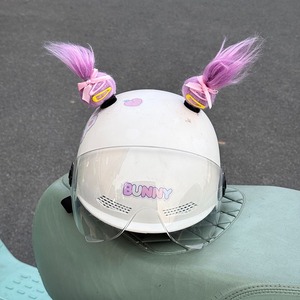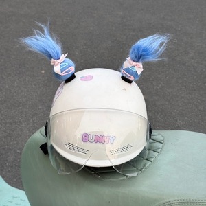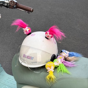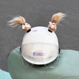 电动车头盔装饰可爱丸子头福娃可爱辫子马尾头盔装饰快拆魔术贴