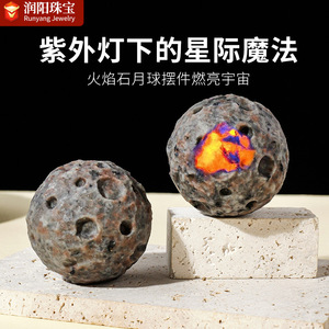 クロスボーダー天然炎石月飾りクリスタル原石クレーター表面彫刻クリスタル工芸品新築祝いギフト