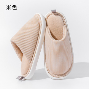 新款日式居家室内软底防滑棉拖鞋女加绒保暖地板静音毛绒棉拖鞋男