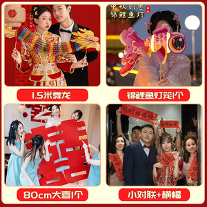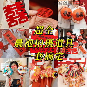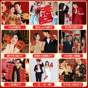 結婚式の写真小道具、結婚式のドレッシングガウン、結婚式のゲーム、切り絵、ドラゴンダンス、花嫁とブライズメイドがハッピーワードを手に持ち、セット全体