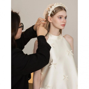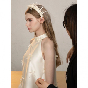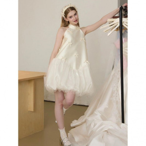 フレンチハイエンドホルターネックプチドレス女性のための夏の2025新しいトレンディなサテンショートホワイトドレス