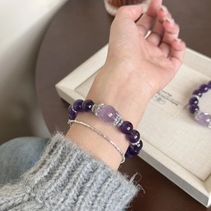 幸柿|天然乌拉圭紫水晶12mm薰衣草紫晶S925花托女生轻奢高级手串
