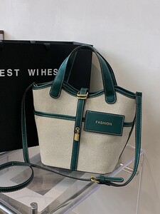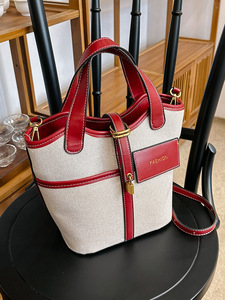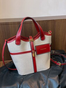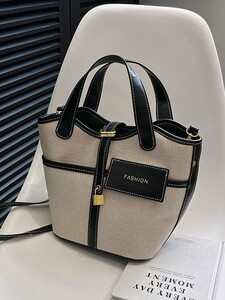ヨーロッパ、アメリカ、日本、韓国の人気のレトロなキャンバスポータブルバケットバッグ女性用 2025 クロスボーダー新ファッションコントラストカラークロスボディバッグ