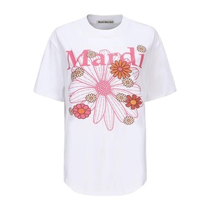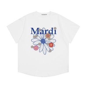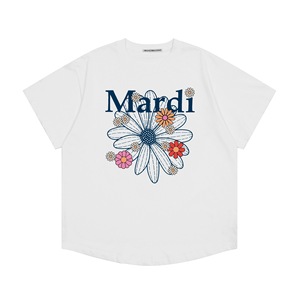 [最高品質] 2025 新しいマルディ半袖ゴールドハイシルバー韓国トレンディブランドマルチフラワーデイジー Tシャツ女性用