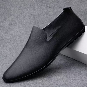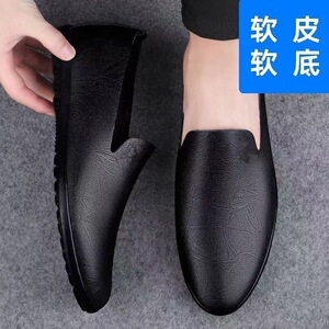 2025 夏の新メンズシューズ通気性のある革靴カジュアルスリッポンビジネス消臭ソフトレザー男性のお父さん靴