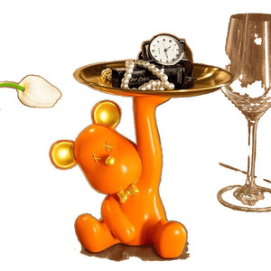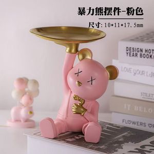 クリエイティブライト高級漫画暴力クマ収納トレイキャンディトレイフロントデスクリビングルームの装飾品テレビワインキャビネット装飾∑