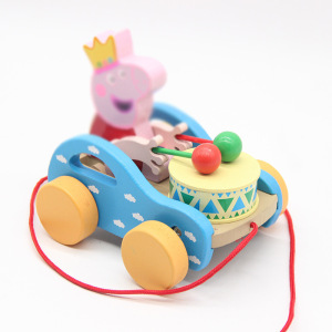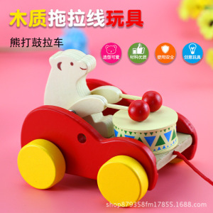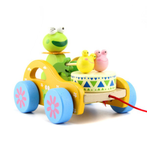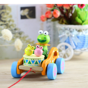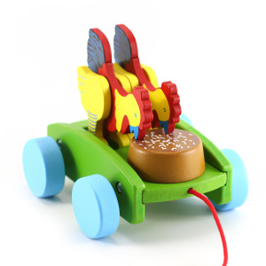 热卖木制鸡吃米拉车搬运车精美 爆款益智青蛙兔子拖拉车玩具批发