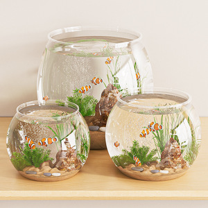 ラウンドアクリル小型飛散防止造園生態水槽模造ガラスリビングルームホーム高精細小魚カメ水槽