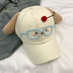 かわいいメガネチェリー子犬ヘッドフォン野球帽女性用つば広顔見せ小顔日よけひさしキャップ