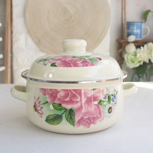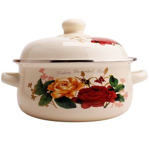 厚手のエナメル鍋 16/18/20cm エナメル鍋 蒸し器 インスタントラーメン鍋 麺煮込みスープ鍋 双耳鍋