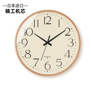日本製セイコー無垢材壁掛け時計ライト高級家庭用時計リビングルームシンプルな壁掛け時計サイレント自動時刻設定電波時計