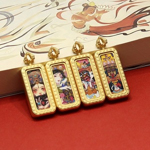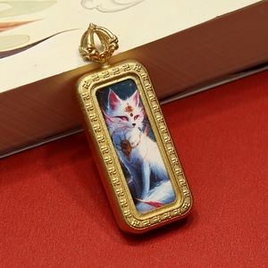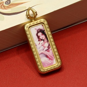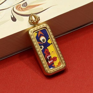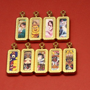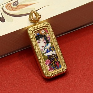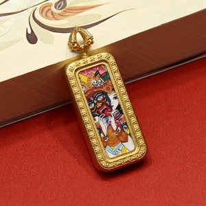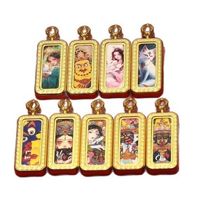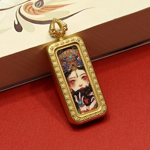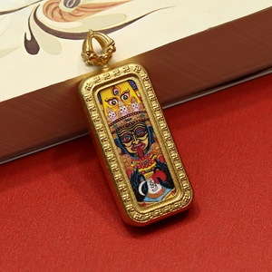 手绘描金迷你钛钢小方形唐卡吊坠本命佛扎基拉姆前世今生藏式批发