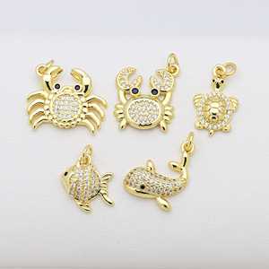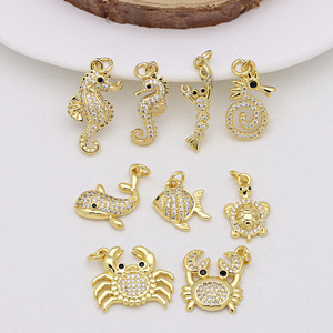 シンプルでファッショナブルなフルジルコン海洋要素カニタツノオトシゴカメクジラ海の魚ブレスレットネックレスペンダントペンダント