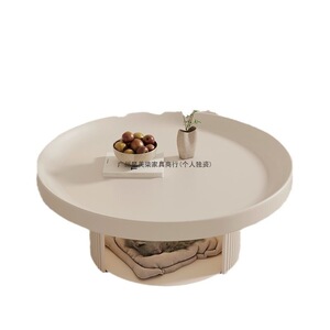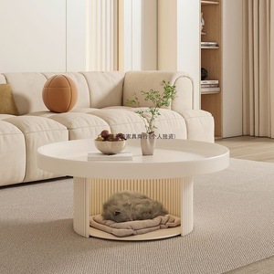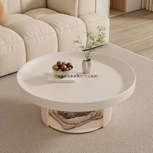 中古风小户型黑色圆形小茶几矮桌法式复古奶油风客厅宠物沙发茶几