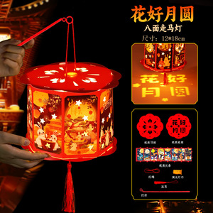 回転ランタン中秋節ウサギフラワーランタンDIY手作り素材パッケージ中秋節屋台卸売ポータブルランタン