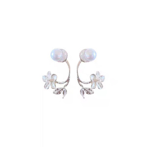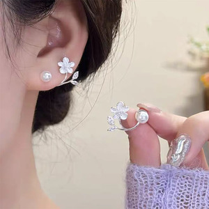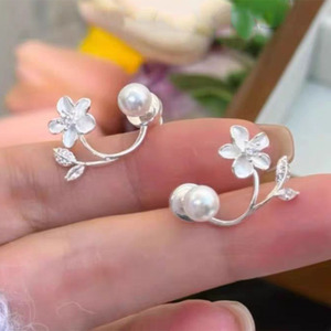 女性のための気質とファッショナブルなパールフラワーイヤリング 2025 新しいスタイルのライト高級ホットスタイルフロントとバックイヤリングニッチ多用途イヤリング