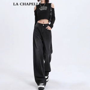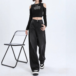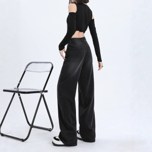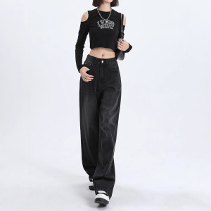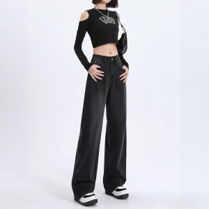 ブラックグレーハイウエストワイドレッグジーンズ女性のための夏の2025トレンディな多用途の新しいルーズスリムドレープストレートパンツ