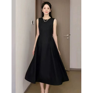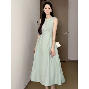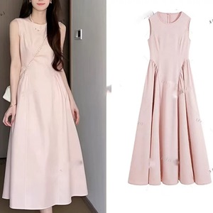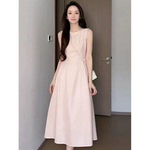 ピンク 2025 新しい夏のノースリーブベストドレス女性のスリムウエストデザインラウンドネックドレス