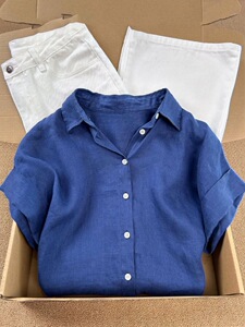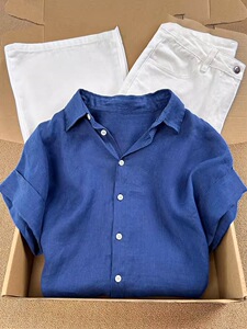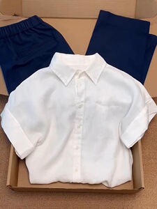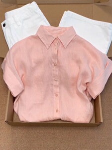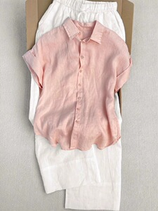 シンプルなミニマリストスタイルの白いラペルリネン半袖シャツ女性の夏薄いニッチハイエンドシングルブレストトップ