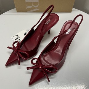 ZA 新しいハイヒール 2025 秋冬フレンチレッドラッカーリボン装飾ファッションパンプスサンダル女性通勤女性