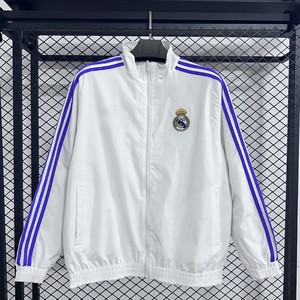S レアル マドリード フットボール スタンドカラー ストライプ カジュアル 防水ジャケット リバーシブル ホワイト