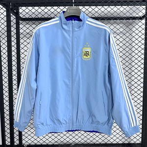 S アルゼンチン代表プリント ジッパー レトロ スタンドカラー ストライプ リバーシブル ジャケット