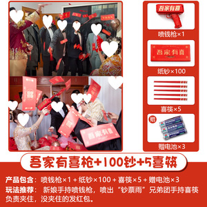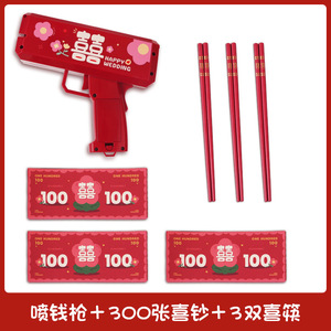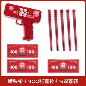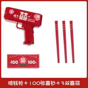 マネースプレーガン + 花のウェディングノート 300 枚 + ダブルウェディング箸 5 組