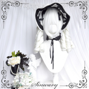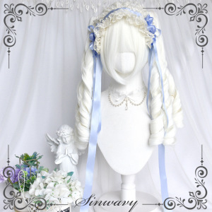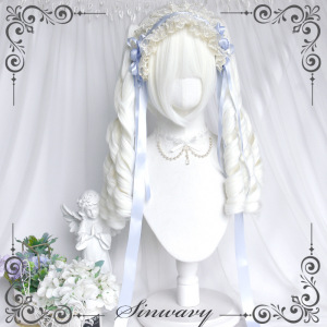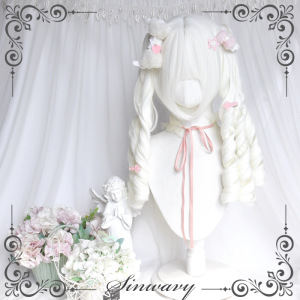 Swanjia-Gothic lo ホワイト クリーミー ローマン カーリー ロング カーリー ロリータ ウィッグ ダブル ポニーテール- | 放棄されたウサギ |