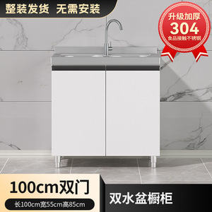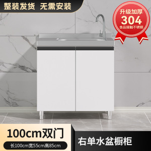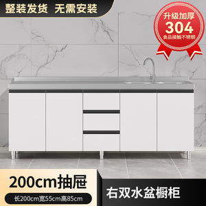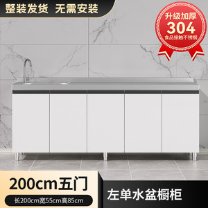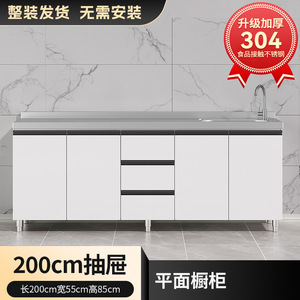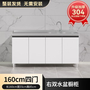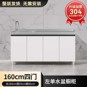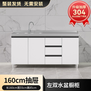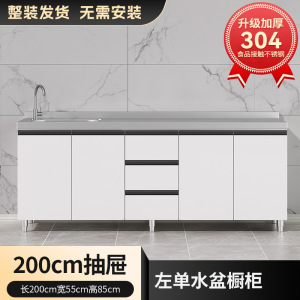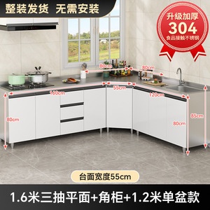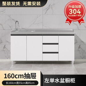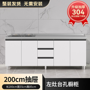 304 ステンレス鋼のキッチンキャビネット一体型シンク田舎のシンプルな収納ストーブキャビネット一体成型家庭用食器棚