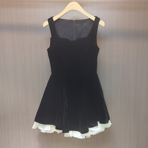 在庫あり深セン南油供給フレンチリボンノースリーブホルターネックブラックドレス女性の夏の2025新しいスタイル