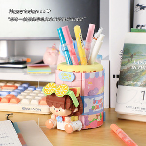 费米S2216肉肉酱笔筒潮玩桌面摆件创意礼物益智拼装小颗粒积木