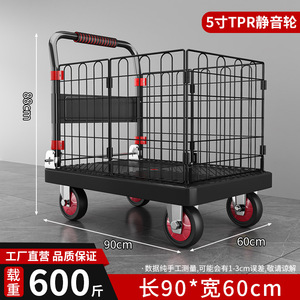 フェンス付きトロリー、厚みのあるサイレントフラットベッド、家庭用折りたたみ式輸送、保管、輸送、屋台用小型トレーラー