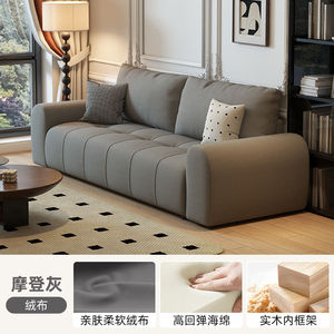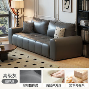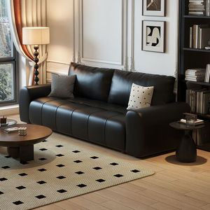 黑色沙发家用客厅意式极简轻奢复古小户型公寓出租的直排皮艺沙发