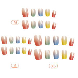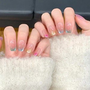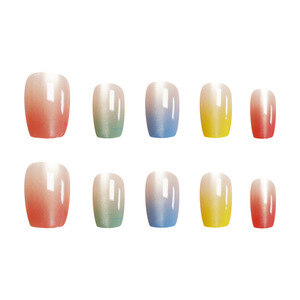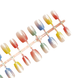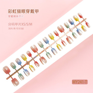 レインボーキャンディキャットアイハイエンドテクスチャガーリースタイルロイヤルシスタースタイルホワイトネイルアートショートスタイル30-Tウェアラブルネイル