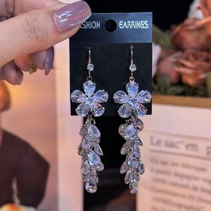 超光沢のあるジルコンフラワーロングタッセルイヤリング、軽い高級感、ファッショナブルなイヤリング、ニッチなハイエンドの小顔イヤリング