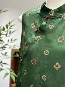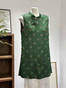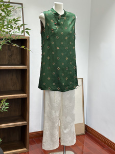新しい中国風のグリーンレーヨンフレグランスクラウドガーゼ中国風ジャカードドレス女性のハイエンドスリムノースリーブチャイナトップス