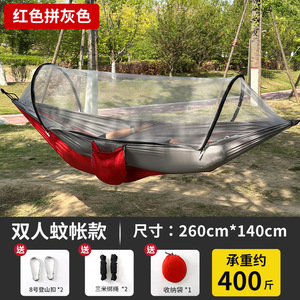 260*140cm 蚊帳付き【レッド×グレー】+タイロープ+カラビナ