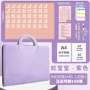 紫色のポータブル妊娠検査バッグ-A4 (写真 30 枚) + A5 (写真 20 枚) ギフトなし