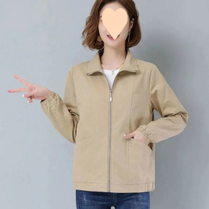 中年妈妈春秋装双层休闲女士短外套2025新款洋气宽松百搭春季上衣